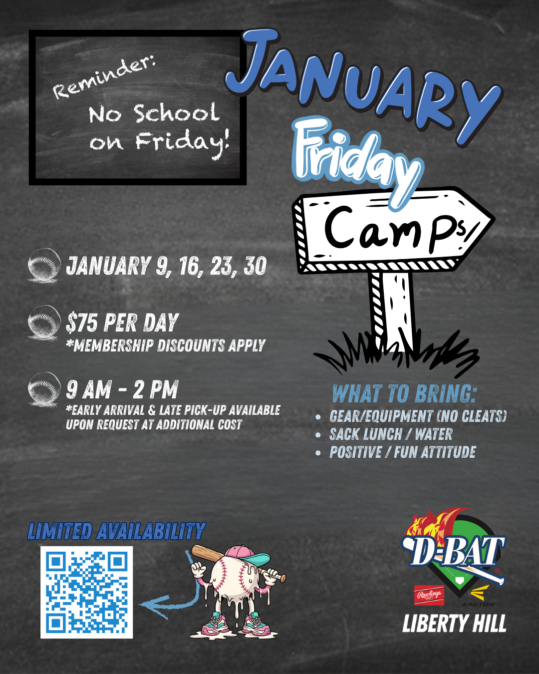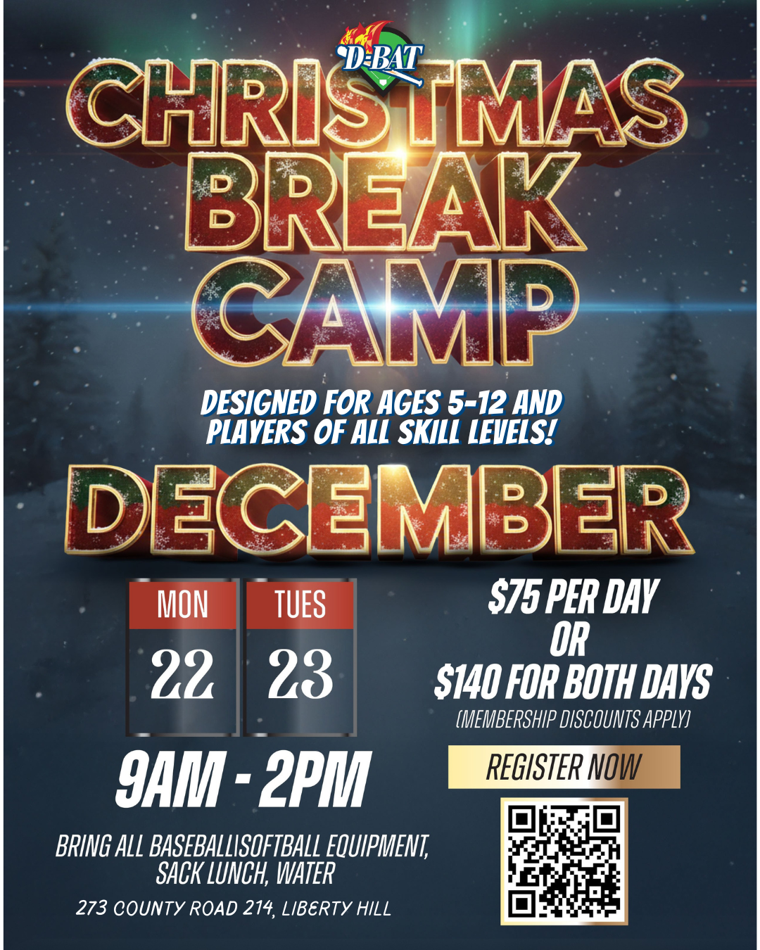 At D-BAT we host more than 50 Camps, Clinics & Classes each year providing a great opportunity for players to improve while having fun at the same time! Our Spring/Holiday Break and Summer Camps are very popular with parents who are looking for something constructive to keep their ballplayers busy when school is out. Our specialty clinics — typically focused on one aspect of the game — give athletes a chance to fine-tune established skills or work on problem areas. For the latest information on our camps and clinics see our camp fliers below.