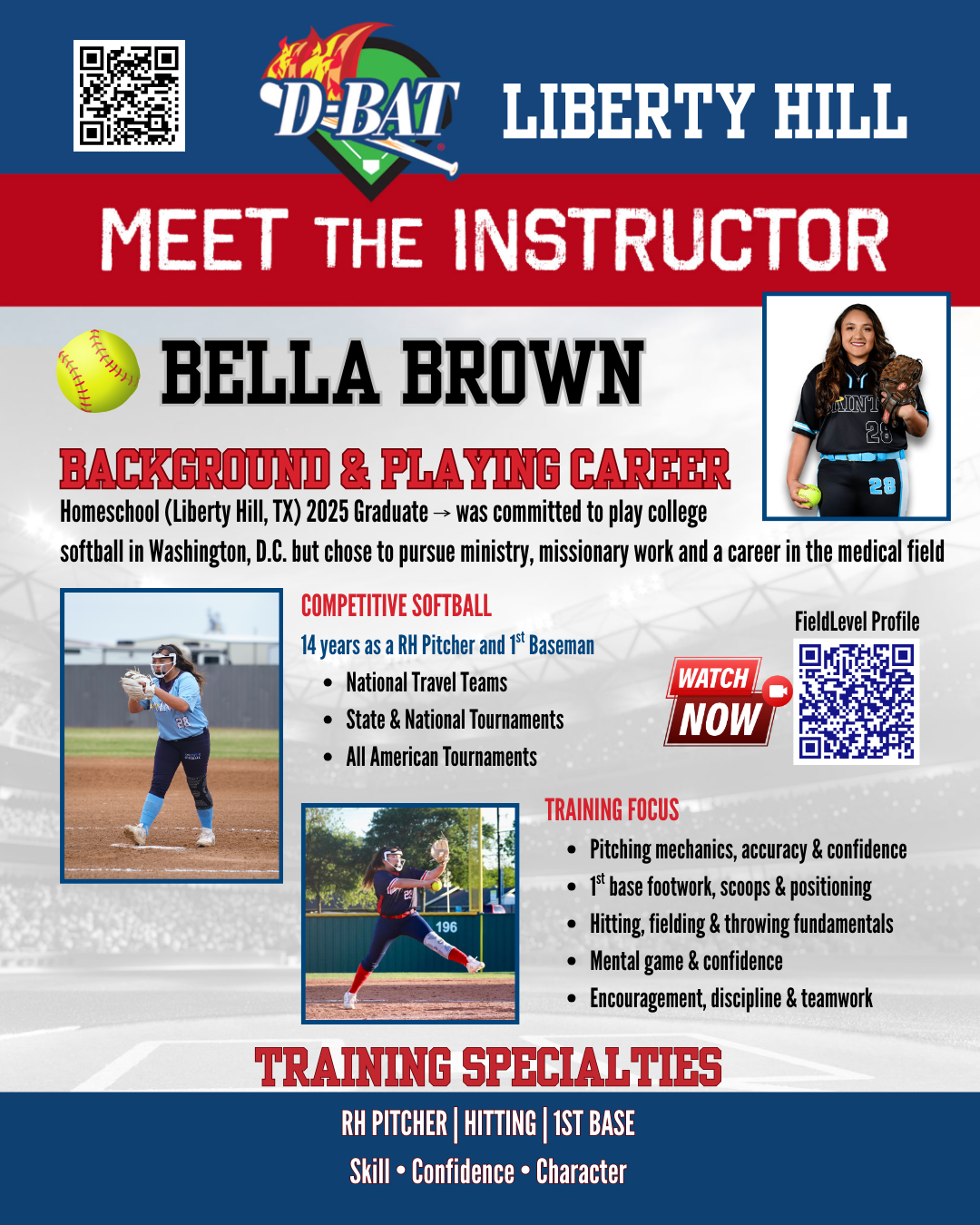 At D-BAT lessons are taught with the ballplayer as the focus while involving the parents during the lesson. We have great instructors who can instruct players at every level for improvement. However, our instructors can not be at the ballplayer's games, so they rely on the parents for feedback on how the player is doing in game situations.